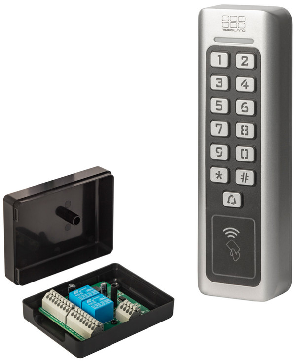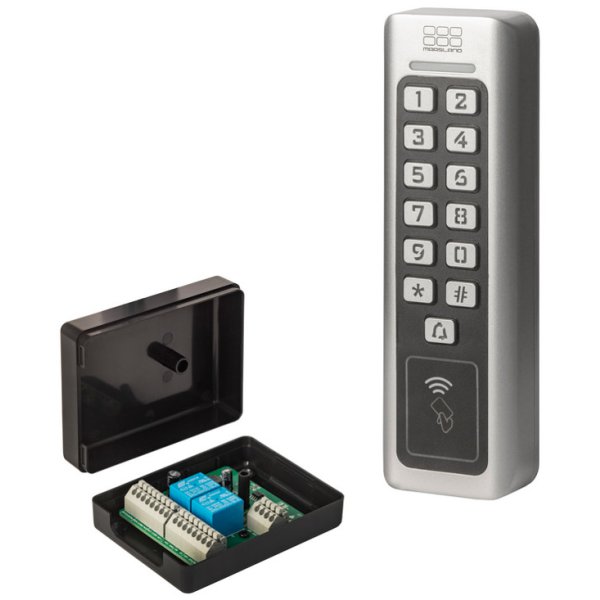 Codeslot - codebedienpaneel - codetableau - kaartlezer - paslezer - RFID lezer - opbouw - vandaalbestendig - binnen/buiten - geluid - status LED - 2x relais - deurbelfunctie - verlichte toetsen - voeding 12V tot 24V AC of DC - IP68