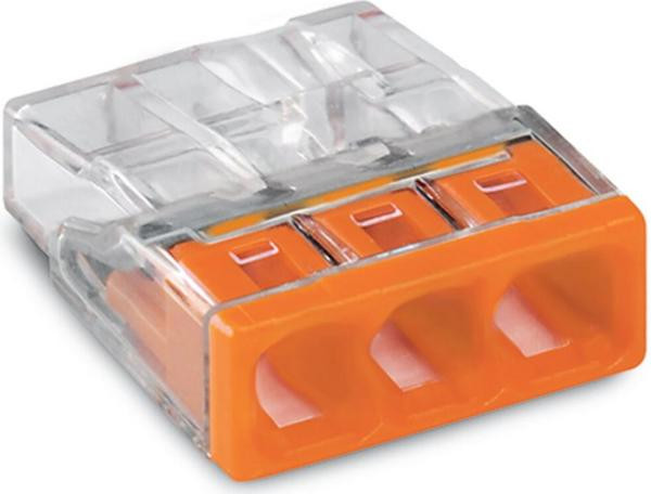 Verbindingsklem - lasklem - wagootje - lasdop - insteekdop - 3-voudig - 0.5 ... 2.5 mm2 - massief - oranje - klein en zeer compact