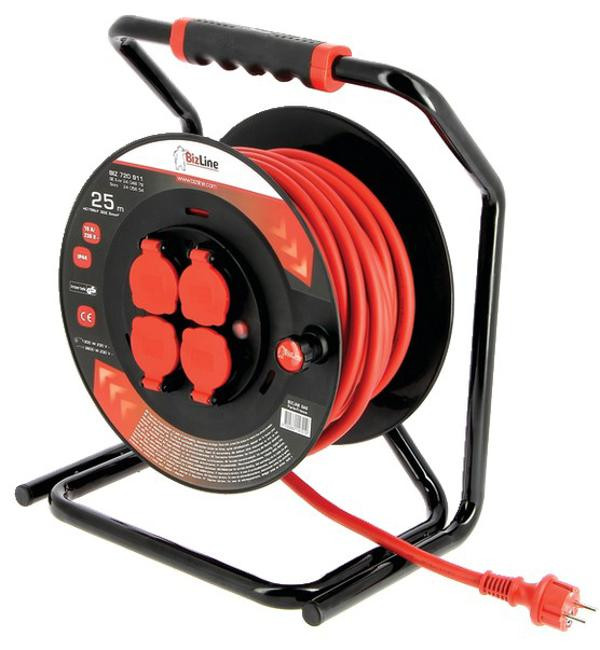 Kabelhaspel - haspel - lengte 25 m - 230 V / 16 A - neopreen H07RNF - 3x 2.5 mm2 - professioneel - max. 3.500 W - schokbestendig - houder versterkt staal - epoxy/polyester coating - afmeting 35 x 23 x 43 cm (lxbxh)