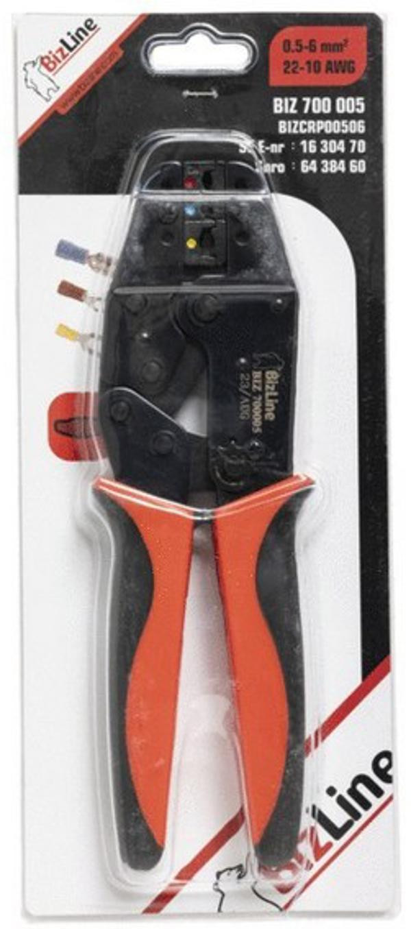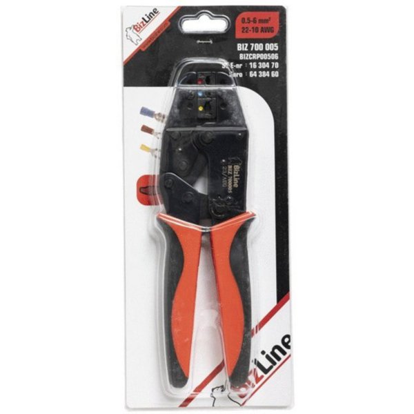Deze krimptang is hoogwaardig gereedschap voor het nauwkeurig dichtknijpen, krimpen van kabelschoenen en draadklemmen, busjes in het bereik van 0,5 tot 6 mm². De tang is voorzien van verschillende kenmerken die het krimpproces efficiënt en betrouwbaar maken: Hierdoor is het een veelzijdig hulpmiddel dat kan worden gebruikt in diverse elektrische en bekabelingstoepassingen. De tang is voorzien van gekleurde markeringen op de matrixvorm, die overeenkomen met de kleurcode van de te krimpen kabelschoenen. Dit maakt het gemakkelijk om de draad aan de juiste kant van de matrix te plaatsen voor nauwkeurig krimpen. De tang heeft soft-handvatten die zorgen voor een comfortabele grip en minder vermoeidheid tijdens langdurig gebruik. Hierdoor kun je de benodigde kracht gelijkmatig toepassen tijdens het krimpproces. Met een lengte van 229 mm biedt deze tang een hefboomeffect, waardoor het krimpproces met minimale inspanning kan worden uitgevoerd. Het is belangrijk op te merken dat de matrijzen voor deze tang niet apart worden verkocht. Het correct plaatsen van de draad aan de kant van de gekleurde markeringen op de matrix is essentieel om ervoor te zorgen dat de kabelschoenen en draadbusjes nauwkeurig en veilig worden gekrompen. Kortom, deze krimptang voor geïsoleerde kabelschoenen een waardevol gereedschap voor professionals in de elektrische en bekabelingssector.