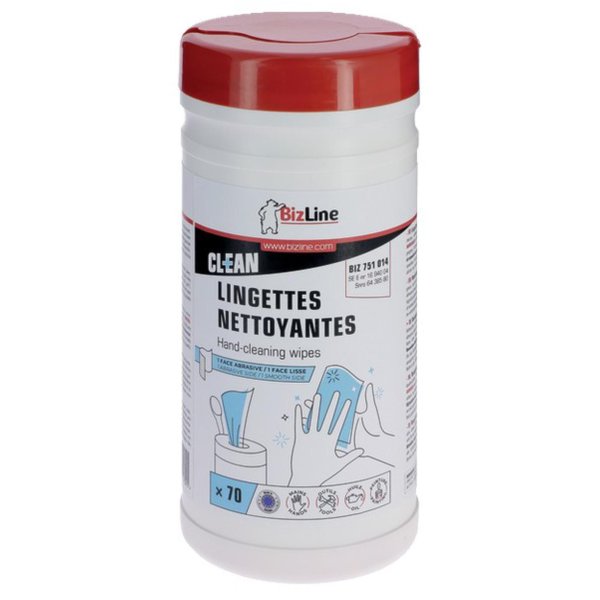 Reinigingsdoekjes - schoonmaakdoekjes - ruwe en glade kant - gebruik zonder water - handen - gereedschap - vuil - verf - hars - kleef - smeer - olie - diesel - teer - asfalt - inkt - was - gras - houtskool - grafiet - koker 70 stuks - 42 g/m2 - hypoallergeen