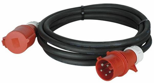 Verlengkabel - koppelkabel - voedingskabel - lengte 5 m - 400 V / 32 A / 5-polig - 5 x 6 mm2 - aderkleuren: blauw / bruin / zwart / grijs / geel/groen - neopreen H07RNF - diameter 22.2 mm - CEE-koppeling / stekker - professioneel - max. 11.000 W - zwart - olie, uv en ozonbestendig - temperatuur -25 / +55°C - robuust - slagvast - antislip - geaard - IP44