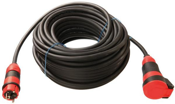Verlengkabel - lengte 25 m - 230 V / 16 A - neopreen H07RNF - 3x 2.5 mm2 - professioneel - max. 3.500 W - zwart - olie, uv en ozonbestendig - temperatuur -30 / +80°C - robuust - slagvast - antislip - geaard - IP54