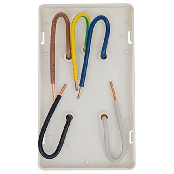 Perilex contactdoos op deksel - geschikt voor de POWER-serie lasdozen - PVC - wit (RAL1013) - 2-fase groep - 5 x 2,5 mm2 VD kleuren -> bruin (L1) - zwart (L2) - blauw (N1)- grijs (N2) - geel/groen (aarde PE) - klik - wand / plafond / plint - afmeting 125 x 73 x 58 mm (lxhxd) - halogeenvrij - perilexstekker - IP20