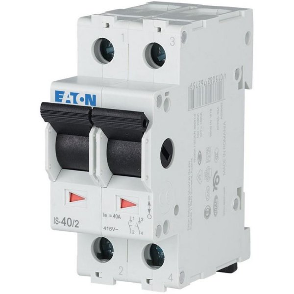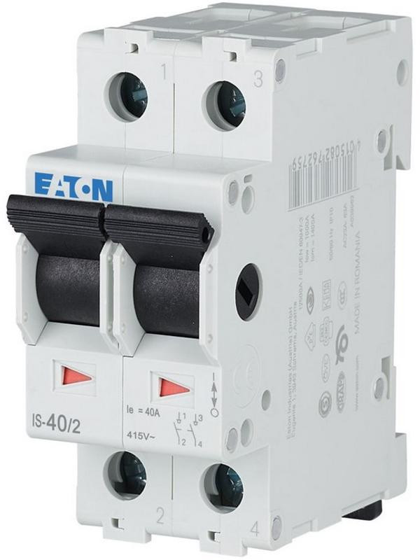 Hoofdschakelaar - circuit breaker - lastschakelaar - lastscheider - 40A - 1-fase (1P) - dubbel polig - 240VAC - schakelcapaciteit 12.5 kA - 2 module breed (36 mm) - afmeting 80 x 60 x 35.4 mm (hxlxb) - inbouwdiepte 69.5 mm - schroefklem tot 50 mm2 - IP40