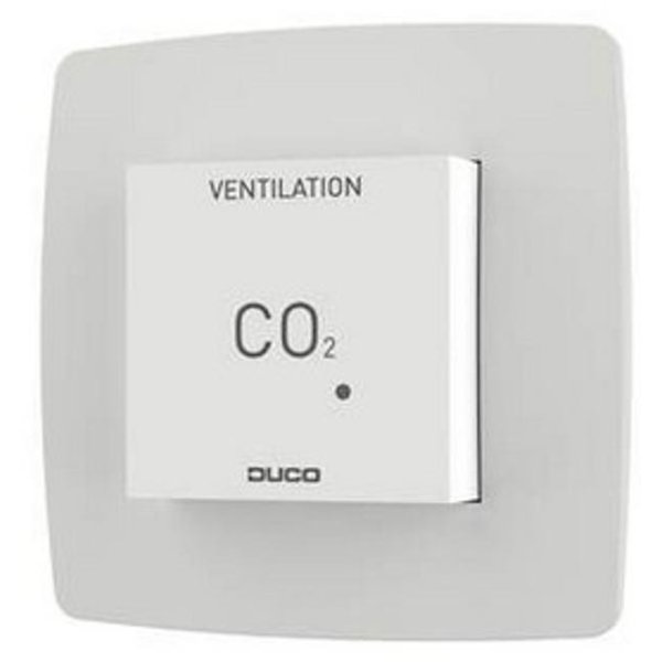 De Duco ruimtesensor is een onderdeel binnen Duco’s vraaggestuurde ventilatiesystemen. De ruimtesensor is voorzien van een ingebouwde CO2- of vochtsensor. De sensor is uitsluitend in 230VAC en 24VDC uitvoering mogelijk. De CO2 Ruimtesensor meet zowel het CO2-gehalte als de temperatuur in de ruimtes en stuurt zo het ventilatiesysteem aan.