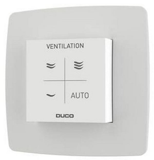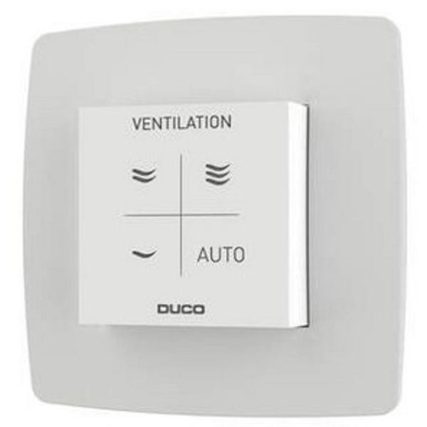 De Duco ruimtesensor is een onderdeel binnen Duco’s vraaggestuurde ventilatiesystemen. De Vocht ruimtesensor meet zowel het relatieve vochtgehalte (RH) als de temperatuur in de vochtige ruimtes en stuurt zo het ventilatiesysteem aan. De Vocht Ruimtesensor wordt 230V of 24V gevoed en communiceert draadloos (‘RF’) of bekabeld (‘Wired’). Een ruimtesensor is een bedieningsschakelaar met ingebouwde vochtsensor.