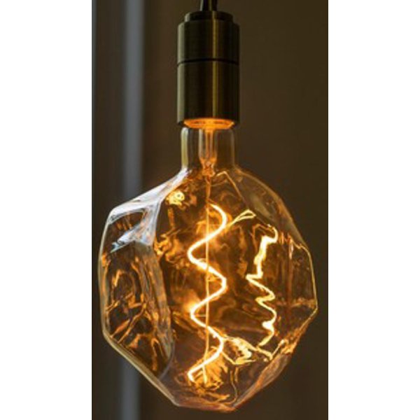 Populaire led lamp - lichtbron - E27 fitting - deco - filament - vintage - look & feel - rustiek - model rock - afmeting 150 x 245 mm - 230V - 4W - 190lm - lichtkleur 1900K - faseaansnijding dimbaar - goud